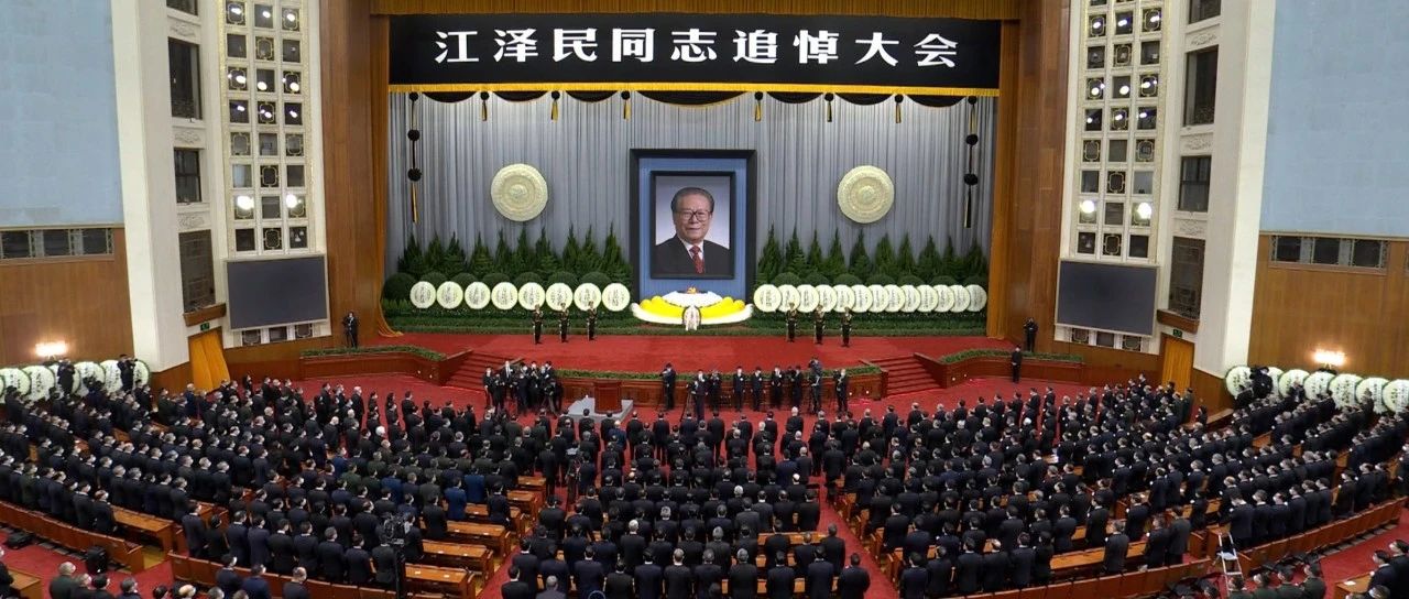 12月6日上午10時,黨中央、全國人大常委會、國務院、全國政協、中央軍委在北京人民大會堂隆重舉行江澤民同志追悼大會。