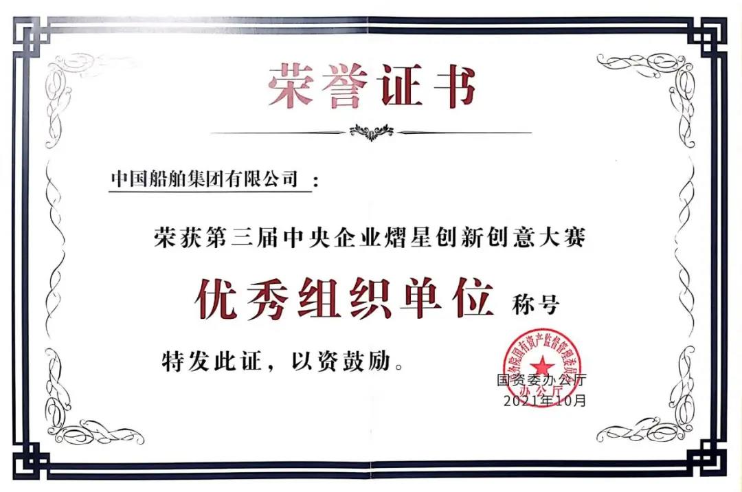 10月25日,第三屆中央企業(yè)熠星創(chuàng)新創(chuàng)意大賽總結(jié)頒獎(jiǎng)活動(dòng)在京舉行,中國(guó)船舶集團(tuán)黨組副書記、總經(jīng)理?xiàng)罱鸪蓞⒓宇C獎(jiǎng)活動(dòng),并代表集團(tuán)公司獲授優(yōu)秀組織單位稱號(hào)。