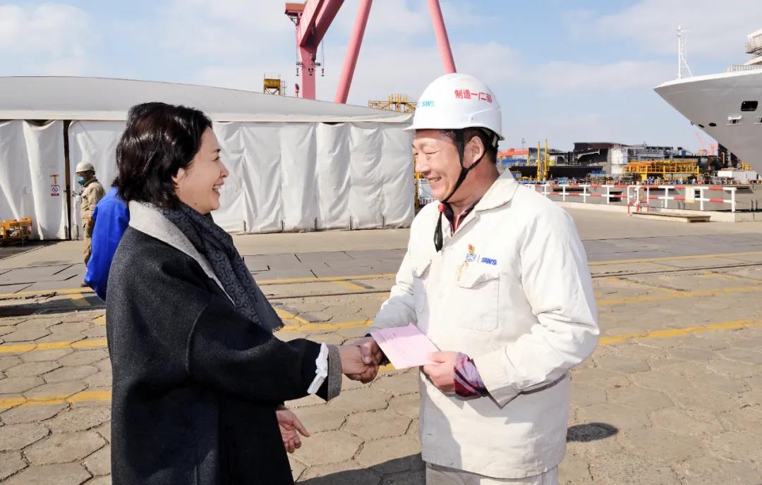 看望慰問期間,各位黨組成員與大家深入交談,詳細了解大家的生活和工作情況,對大家為集團公司改革發展作出的貢獻表示感謝,并代表集團公司黨組祝大家新春快樂、身體健康、闔家幸福。各位黨組成員表示,2021年,在以習近平同志為核心的黨中央堅強領導下,中國船舶集團深入學習貫徹習近平總書記重要講話和重要指示批示精神,扎實開展黨史學習教育,牢記強軍首責、聚焦主業實業,加快科技自立自強,深入實施改革三年行動,不斷強化精細化管理,平穩高效完成總部遷駐上海,三大造船指標位居世界第一,實現利潤總額同比增長24.5%、凈利潤同比增長27.7%,經濟效益創歷史最好水平,獲得中央企業負責人經營業績考核、黨建責任制考核、董事會考核三個“A級”。2022年,中國船舶集團將堅持以習近平新時代中國特色社會主義思想為指導,持續深入貫徹落實習近平總書記重要講話和重要指示批示精神,堅持穩中求進工作總基調,完整、準確、全面貫徹新發展理念,服務構建新發展格局,穩增長、強管理、健體系、防風險,堅決履行強軍首責,加快科技自立自強,提升主業實業競爭力,深化重組整合融合,決戰決勝改革三年行動,充分發揮黨建引領保障作用,加快建設世界一流船舶集團,以優異成績迎接黨的二十大勝利召開。