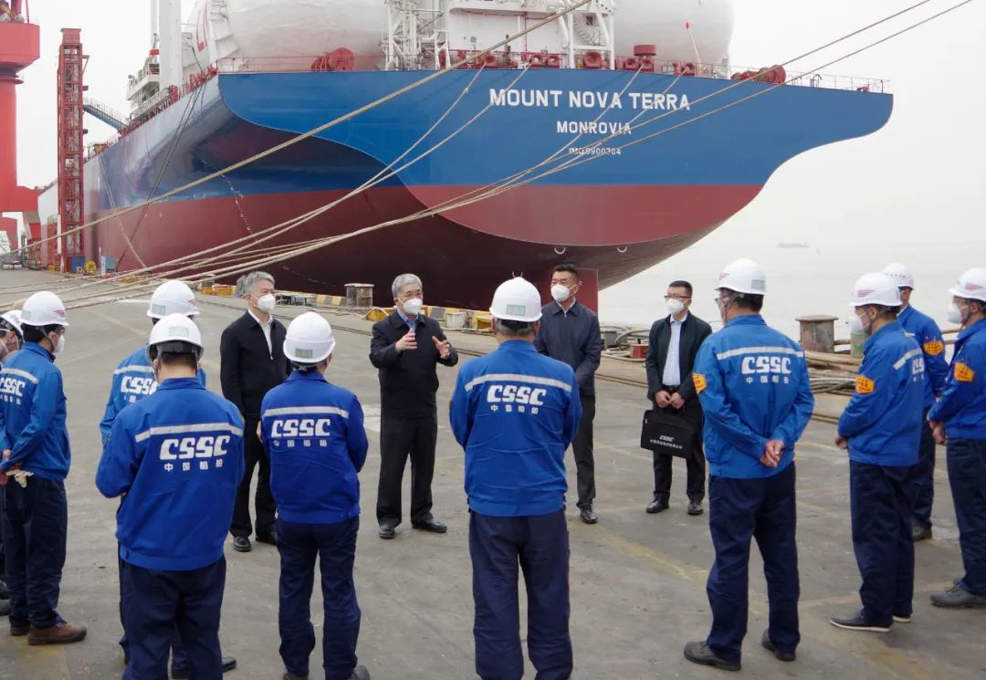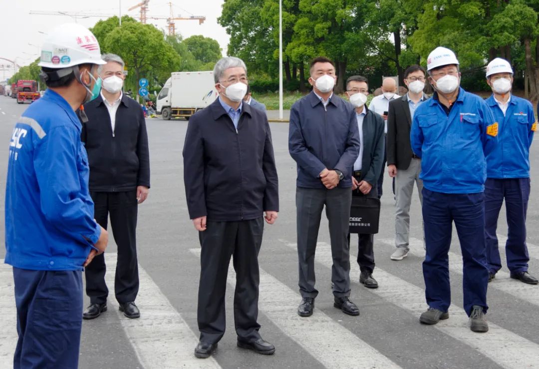 5月15日,中國(guó)船舶集團(tuán)有限公司黨組書記、董事長(zhǎng)雷凡培到集團(tuán)公司旗下上海外高橋造船有限公司調(diào)研疫情防控和復(fù)工復(fù)產(chǎn)工作。中國(guó)船舶集團(tuán)黨組成員、副總經(jīng)理孫偉參加調(diào)研。