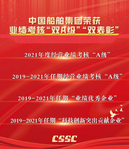 7月16日-17日,國務院國資委舉辦中央企業(yè)負責人研討班,公布了中央企業(yè)2021年度和2019-2021年任期經(jīng)營業(yè)績考核結果,中國船舶集團榮獲年度和任期考核“雙A級”,并被評為任期“業(yè)績優(yōu)秀企業(yè)”和“科技創(chuàng)新突出貢獻企業(yè)”。