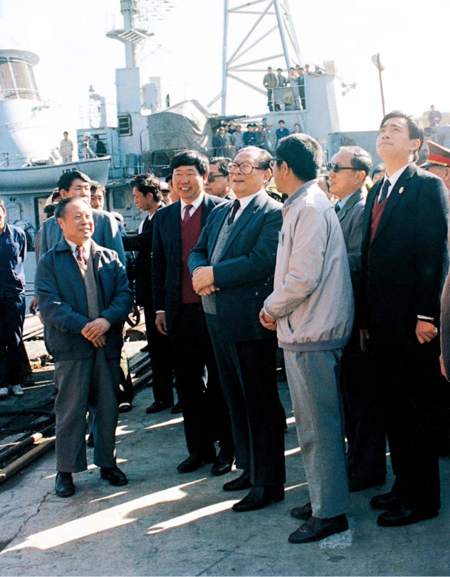 江澤民同志曾先后三次到江南造船視察。圖為1994年4月29日,江澤民同志視察江南造船。據(jù)相關(guān)人士回憶,當時江澤民同志視察江南有兩個原因,一是“五一”節(jié)快要到了,江澤民同志要看望工人階級,就選擇了江南造船,因為江南造船是產(chǎn)業(yè)工人的搖籃;第二個原因是112艦計劃當年5月8日前交艦,交艦前江澤民同志要先視察。