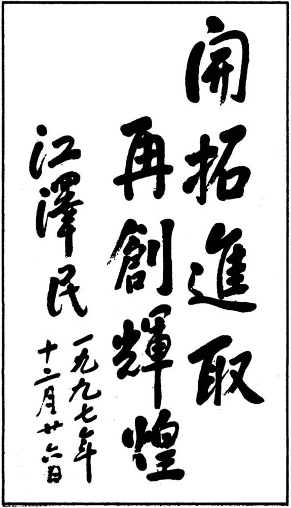 1997年12月26日,江澤民同志為中國船舶工業(yè)總公司題詞:“開拓進取,再創(chuàng)輝煌”。