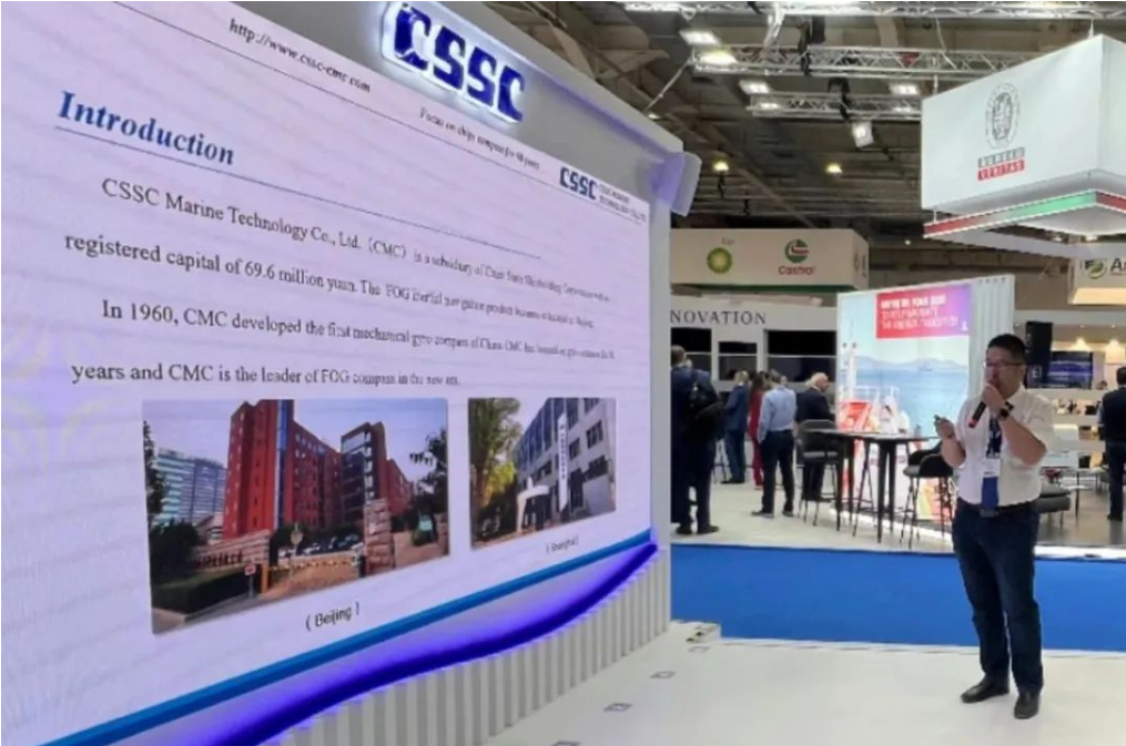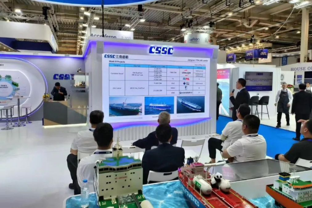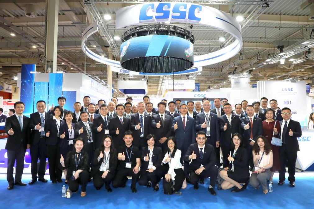 此次展會,中國船舶集團(tuán)攜旗下19家成員單位參展,有關(guān)成員單位負(fù)責(zé)人率隊(duì)赴展會開展重點(diǎn)船海項(xiàng)目經(jīng)營洽談并拜訪當(dāng)?shù)睾椭苓厙铱蛻簟<瘓F(tuán)公司以“共贏未來”為參展主題,設(shè)置集團(tuán)總體區(qū)、綠色航運(yùn)解決方案區(qū)、低碳環(huán)保配套設(shè)備區(qū)共3個展示區(qū)域,重點(diǎn)展示了135500總噸大型郵輪、175000方LNG運(yùn)輸船、24000箱超大型集裝箱船、210000噸氨燃料散貨船、LNG雙燃料VLCC等一系列高技術(shù)、高附加值明星產(chǎn)品,以及CPGC-WinGD 10X92DF-M甲醇雙燃料發(fā)動機(jī)、船用碳捕捉系統(tǒng)等全球船東高度關(guān)注的綠色低碳配套設(shè)備。同時,通過展臺上醒目的品牌標(biāo)識、層級化的品牌體系圖、富有感染力的品牌推介視頻,首次面向全球客戶,立體化展示“中國船舶”品牌及下屬企業(yè)品牌和產(chǎn)品品牌體系,進(jìn)一步強(qiáng)化了集團(tuán)公司品牌形象。