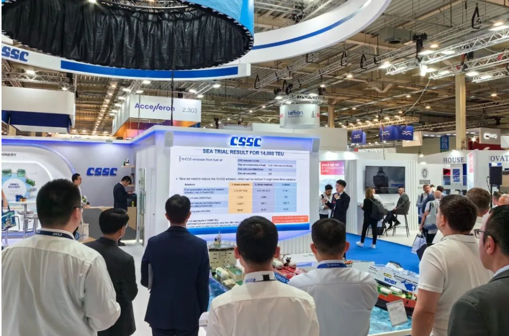 展會期間促成集團(tuán)公司多家成員單位船海項(xiàng)目成功簽約,共計(jì)超50億元人民幣,包括中船貿(mào)易、廣船國際與EPS公司4艘11萬噸LRII型LNG雙燃料油輪項(xiàng)目簽約、與ASP公司2艘5萬噸MR甲醇雙燃料油輪項(xiàng)目簽約,中船貿(mào)易、大連造船與CAPITAL公司2艘30萬噸VLCC建造項(xiàng)目簽約,另外還簽訂了40多億元新造船項(xiàng)目意向書;同時,參展成員單位在集團(tuán)公司展臺上開展了豐富的推介活動,包括江南造船“綠色船型家族”產(chǎn)品推介會、中船系統(tǒng)院“羅經(jīng)進(jìn)入光纖時代”產(chǎn)品推介會、七一一所“全球首個全流程船用碳捕捉系統(tǒng)案例分享會”,吸引了眾多國際船東、船級社和設(shè)備廠商前來觀摩,并共同探討未來合作機(jī)遇。