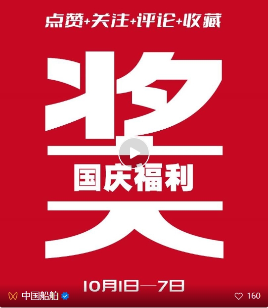 國慶7天樂,我們一起歡度國慶,中國船舶集團(tuán)新媒體平臺(tái)抽獎(jiǎng)啦!