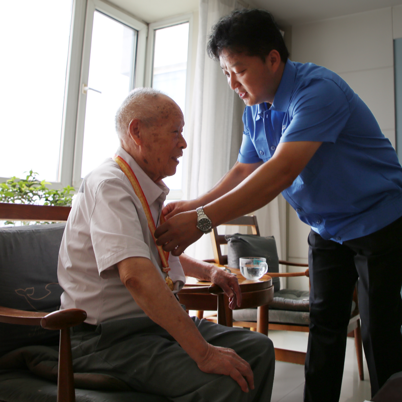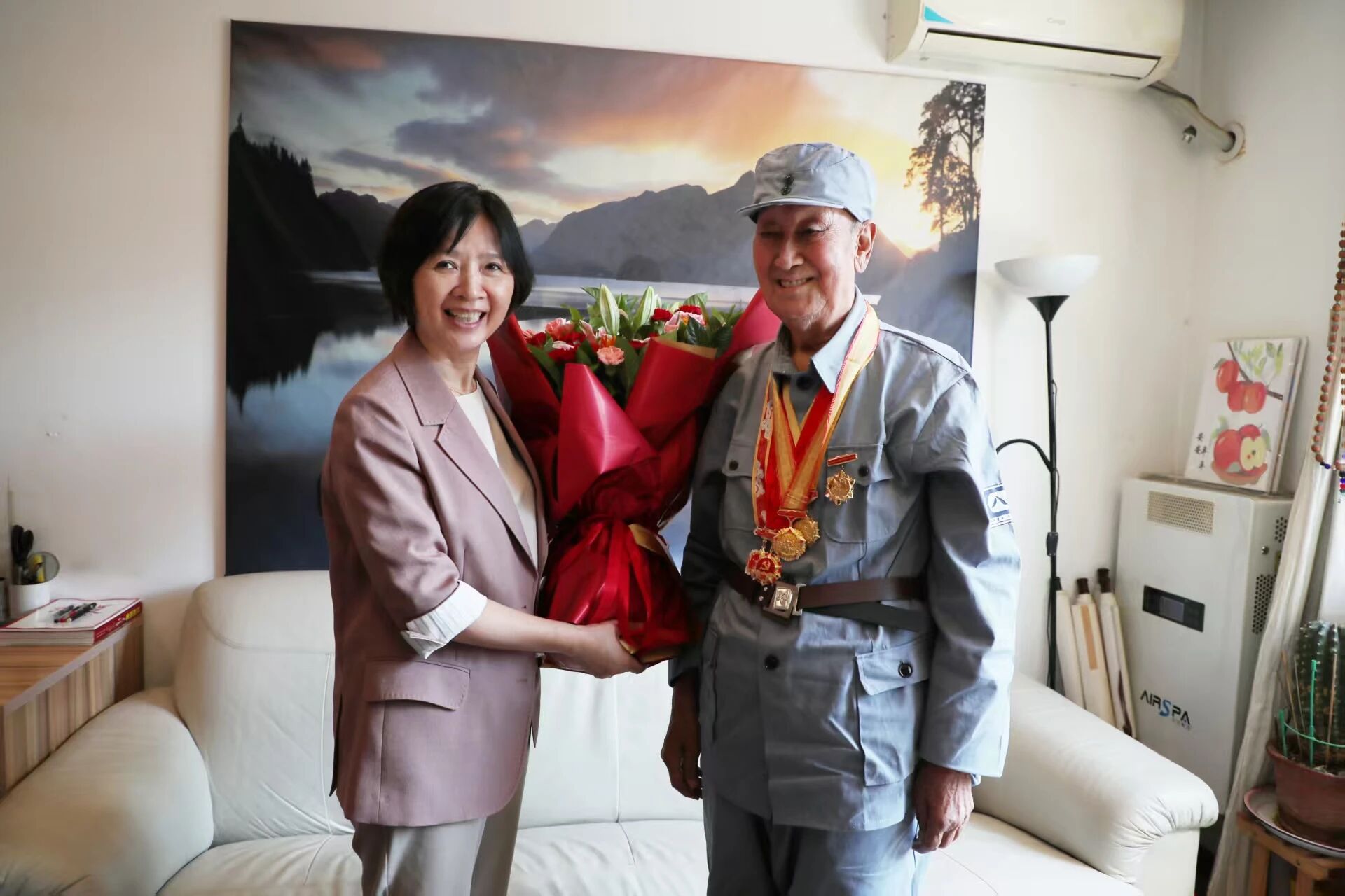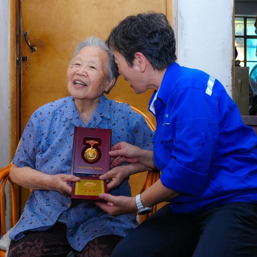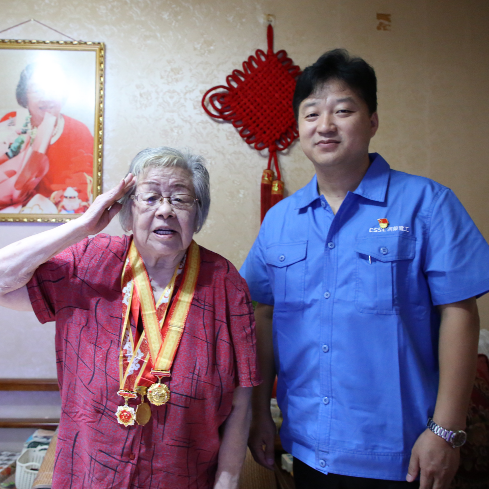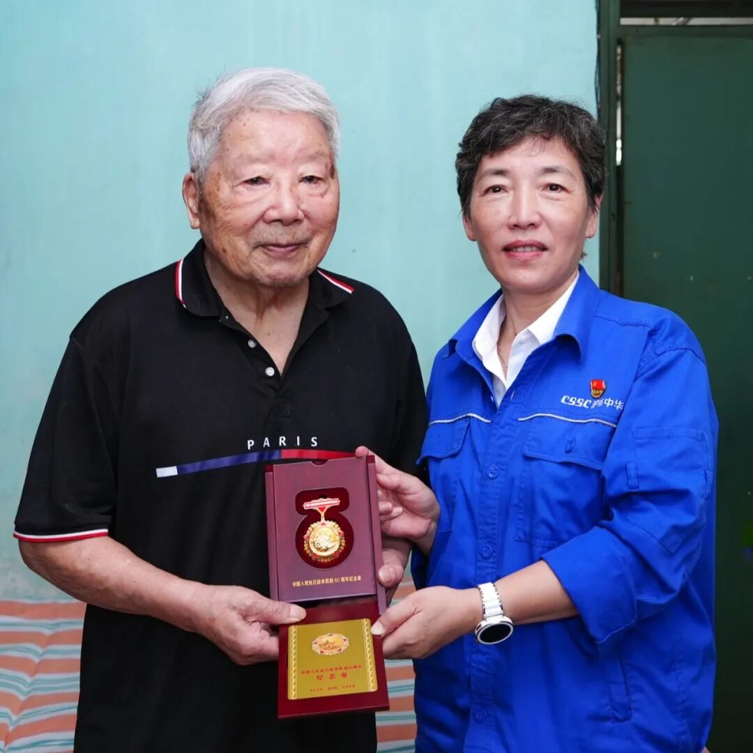 在紀(jì)念中國(guó)人民抗日戰(zhàn)爭(zhēng)暨世界反法西斯戰(zhàn)爭(zhēng)勝利80周年之際,中國(guó)船舶集團(tuán)有限公司黨組副書記、董事賈海英走訪慰問抗戰(zhàn)老兵焦英杰,頒發(fā)“中國(guó)人民抗日戰(zhàn)爭(zhēng)勝利80周年”紀(jì)念章,并代表集團(tuán)公司黨組向他致以崇高敬意和誠摯問候。