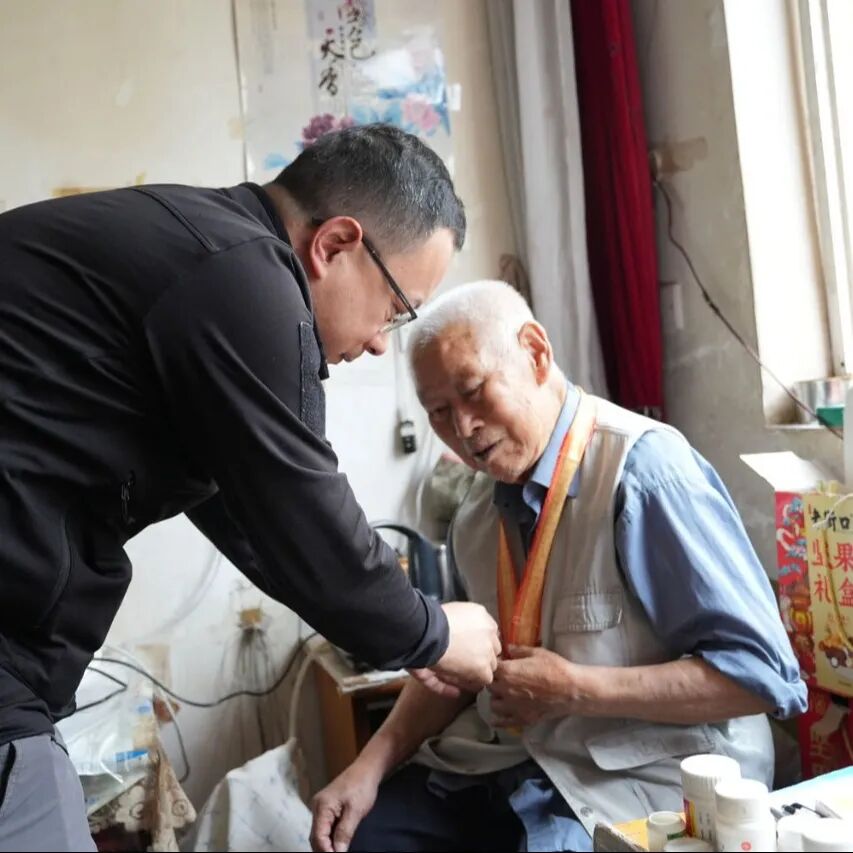 賈海英在焦英杰家中與其促膝交談,悉心詢問他的身體狀況和生活情況,專注聽他講述抗戰(zhàn)時(shí)期的崢嶸歲月,頻頻點(diǎn)頭回應(yīng)并追問細(xì)節(jié),衷心地感謝他在抗戰(zhàn)時(shí)期作出的巨大犧牲和貢獻(xiàn),并祝愿他身體健康、福壽綿長(zhǎng);同時(shí),叮囑總部各部門及相關(guān)單位要及時(shí)關(guān)心、了解抗戰(zhàn)老兵的生活和工作情況,使大家真切感受到集團(tuán)公司黨組的關(guān)懷與溫暖。