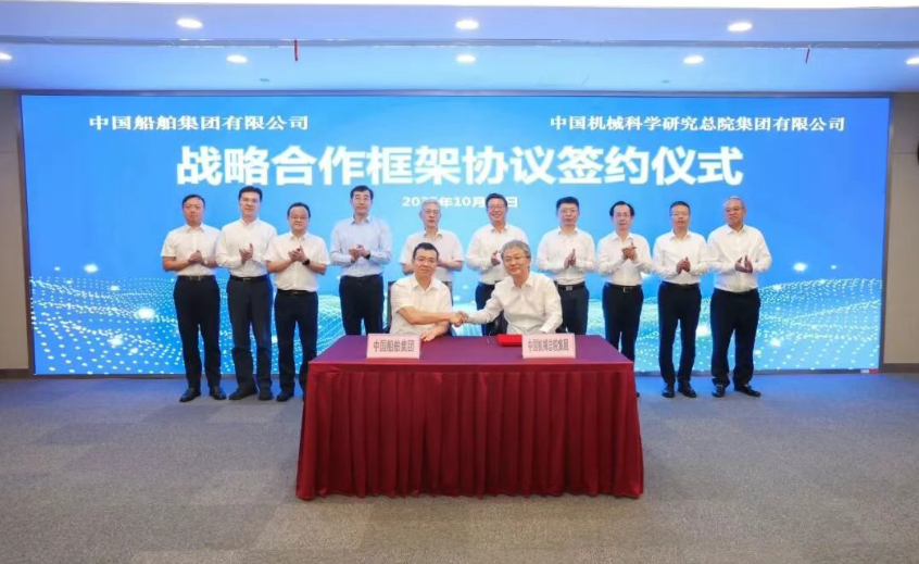 10月17日,中國船舶集團有限公司與中國機械科學總院集團有限公司在上海簽署戰(zhàn)略合作框架協議。中船集團黨組書記、董事長徐鵬,中國機械總院黨委書記、董事長王德成出席簽約儀式。中船集團黨組成員、副總經理彭原璞,中國機械總院集團副總經理姜超分別代表雙方在協議上簽字。簽約前,雙方就進一步加強溝通交流、深化多領域合作進行了交流探討。