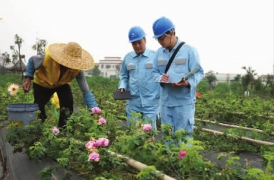 南方電網(wǎng)廣東中山小欖供電局員工向花農(nóng)宣傳安全用電知識