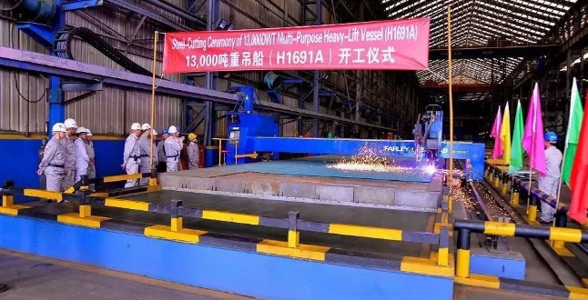 ????11月12日,滬東中華造船(集團)有限公司為中國船舶(香港)航運租賃有限公司建造的系列13000噸重吊船中的6號船開工。該船由上海船舶研究設計院設計,總長149.99米,型寬25.6米,型深13.5米,設計吃水6.8米,結構吃水8.3米,入級DNV GL。