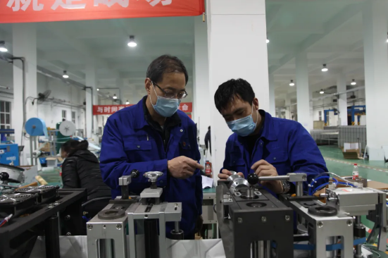 ????接到口罩機、壓條機緊急生產任務后,作為主要生產單位,金加車間黨支部連夜召開部署動員會。一方面,緊急摸排目前能夠復工返崗的人員情況,另一方面,面對緊急繁重的任務,他們做出了一個重要決定:所有在車銑鉗崗位工作過的,目前已經在管理和輔助崗位上的職工,立即返回原崗,參與生產!1000多種近30000個零部件,短時間內要全部加工完成?!斑@是建廠以來從未有過的任務量?!秉h支部書記、車間主任孫培杰在動員會上說,“黨員要發揮好模范作用,全體員工都要給我頂上去,不獲全勝,絕不收兵!”