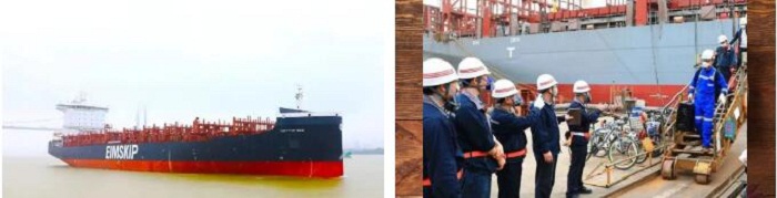 ?? H5647船是2150TEU(標準集裝箱)系列船的第三艘,總長179.4米,型寬30.95米,型深17.4米,滿載2150箱,設計吃水9米;配置了廢氣再循環(EGR)系統和脫硫系統,可降低硫氮化合物的排放,滿足國際海事組織(IMO)Tier III 排放要求,是一艘綠色、環保的船舶。