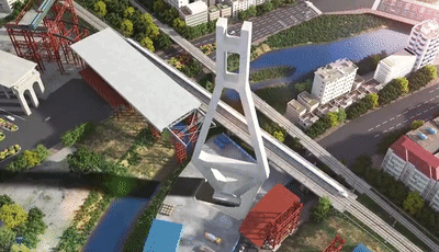 ????為保障安全,項目部經過多輪論證,決定使用世界首創的“水平二次轉體”施工工藝——即在原計劃的“塔梁共轉”常規轉體施工之前,增加一次“獨塔單轉”。
