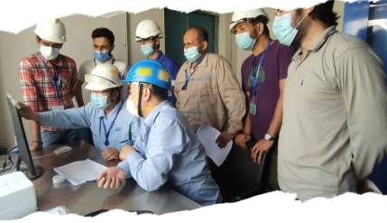 ▲用專業(yè)贏得信賴,海外某項(xiàng)目現(xiàn)場(chǎng),制氫設(shè)備工程部員工加班加點(diǎn)開展設(shè)備調(diào)試,指導(dǎo)工作人員熟悉設(shè)備操作。圖為技術(shù)人員現(xiàn)場(chǎng)開展技術(shù)講解培訓(xùn)。