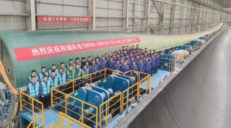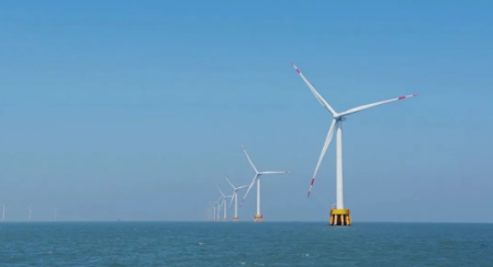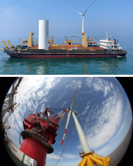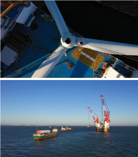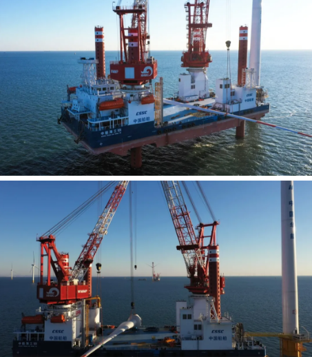 中國船舶集團建造的“中船海工101”號風電安裝平臺正在海上作業