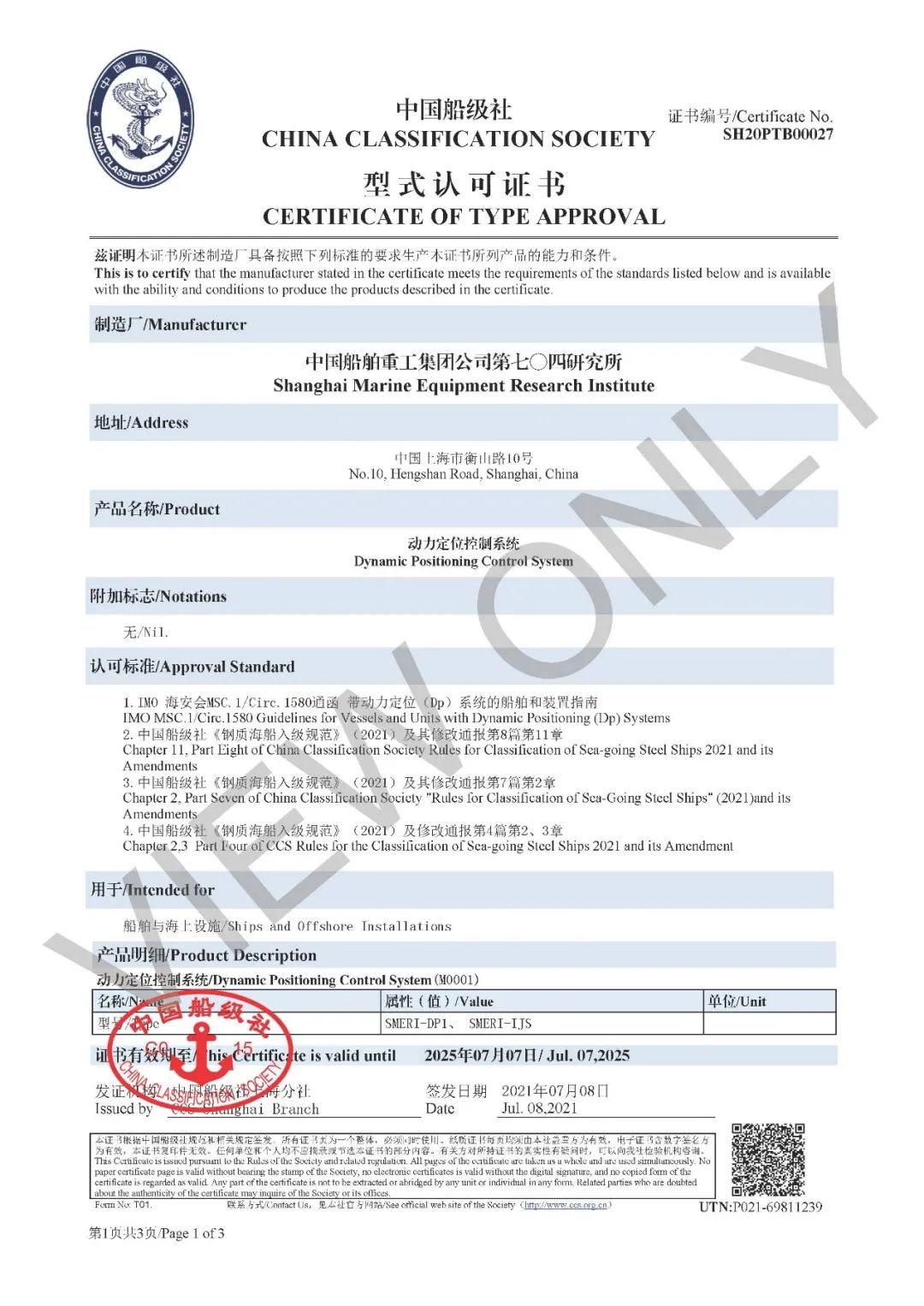 8月5日,中國船舶集團(tuán)七〇四所動(dòng)力定位控制系統(tǒng)(DP系統(tǒng))獲中國船級(jí)社(CCS)授予的國產(chǎn)化型式認(rèn)可證書。該所成為國內(nèi)第一家滿足CCS2021年最新《鋼質(zhì)海船入級(jí)規(guī)范》要求的動(dòng)力定位控制設(shè)備及系統(tǒng)供應(yīng)商。