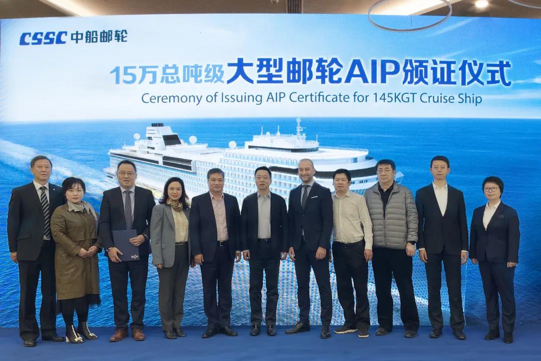12月9日,中國船舶集團(tuán)旗下中船郵輪自主研發(fā)設(shè)計(jì)的15萬總噸級(jí)大型郵輪獲得意大利船級(jí)社原則性認(rèn)可(AIP)證書。這是中國首次獨(dú)立自主研發(fā)設(shè)計(jì)的完全擁有自主知識(shí)產(chǎn)權(quán)的大型郵輪,一舉打破國外在該領(lǐng)域長期技術(shù)封鎖和壟斷,開啟中國大型郵輪自主設(shè)計(jì)新時(shí)代。中國船舶集團(tuán)黨組成員、副總經(jīng)理盛紀(jì)綱出席授證儀式并講話。