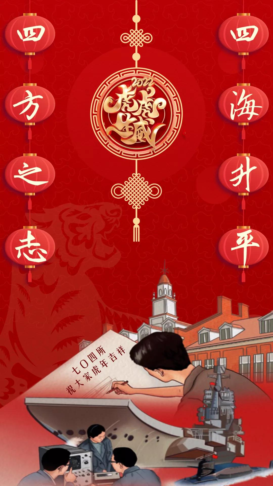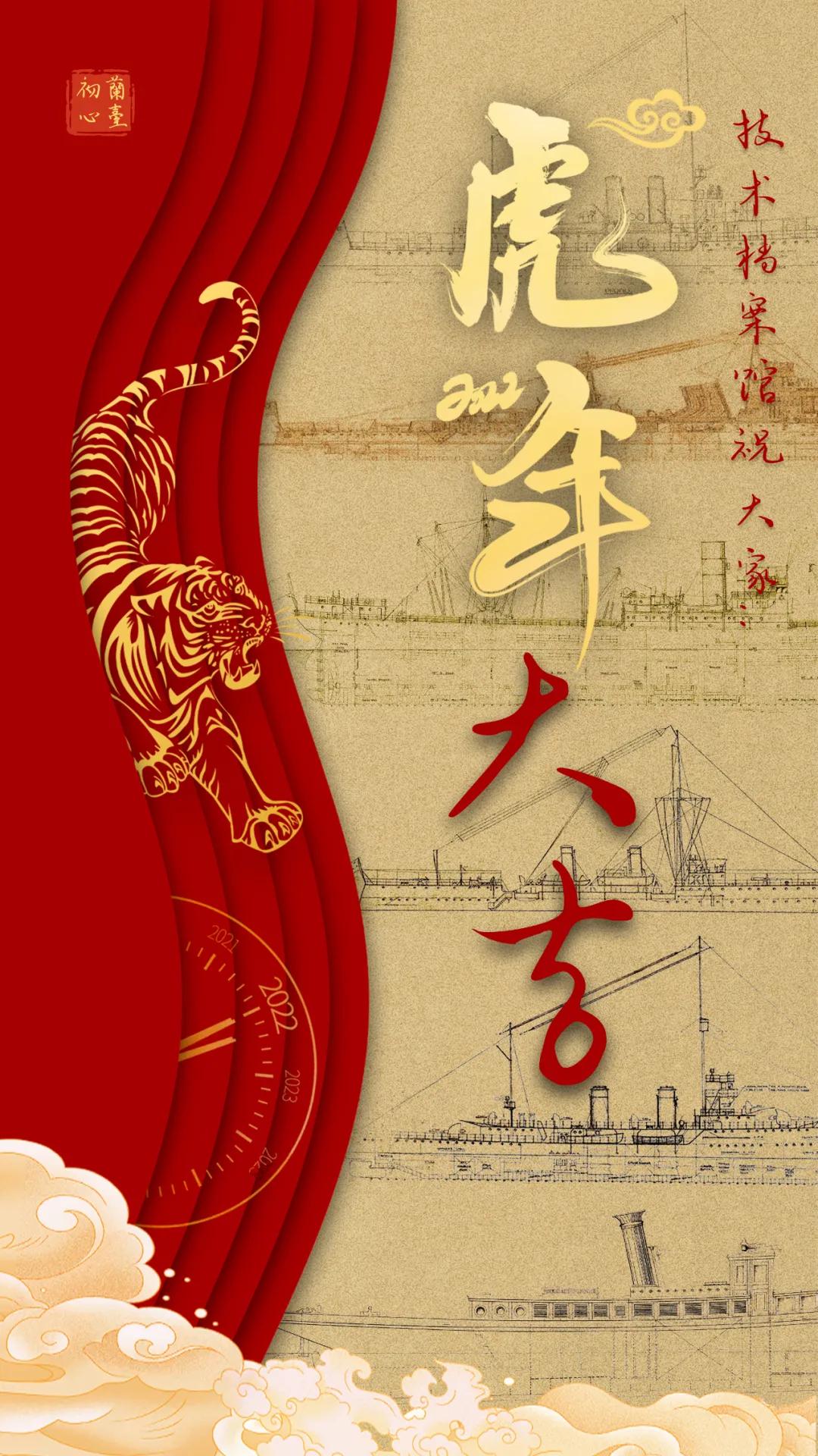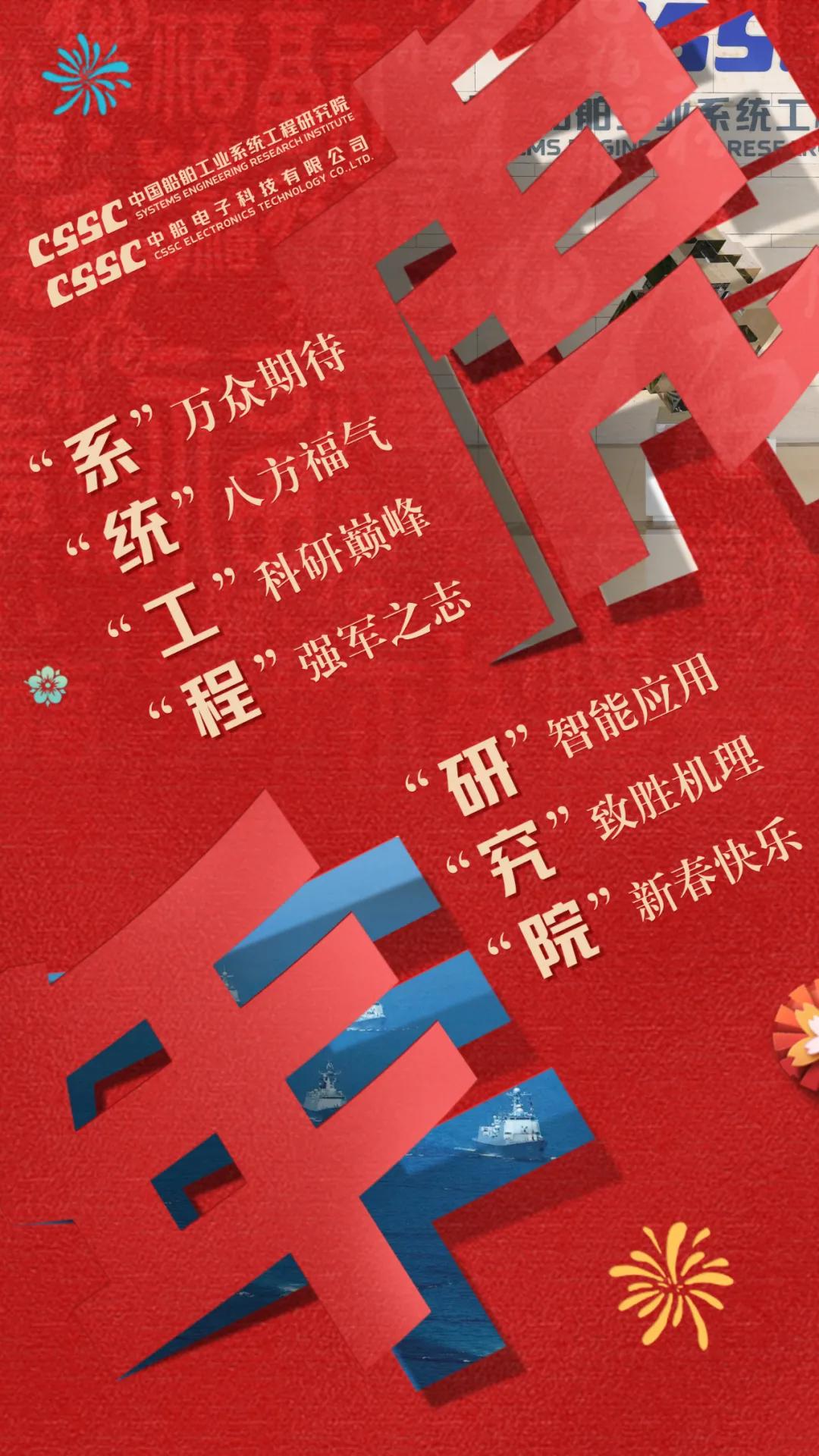 以中國紅為主色調(diào),運用傳統(tǒng)剪紙手法結(jié)合鏤空設(shè)計,寓意揭開虎年新篇章,映入眼簾的艦艇乘風(fēng)破浪、浩浩蕩蕩,傳遞系統(tǒng)工程研究院/中船電科建設(shè)強(qiáng)大海軍的信心和決心!