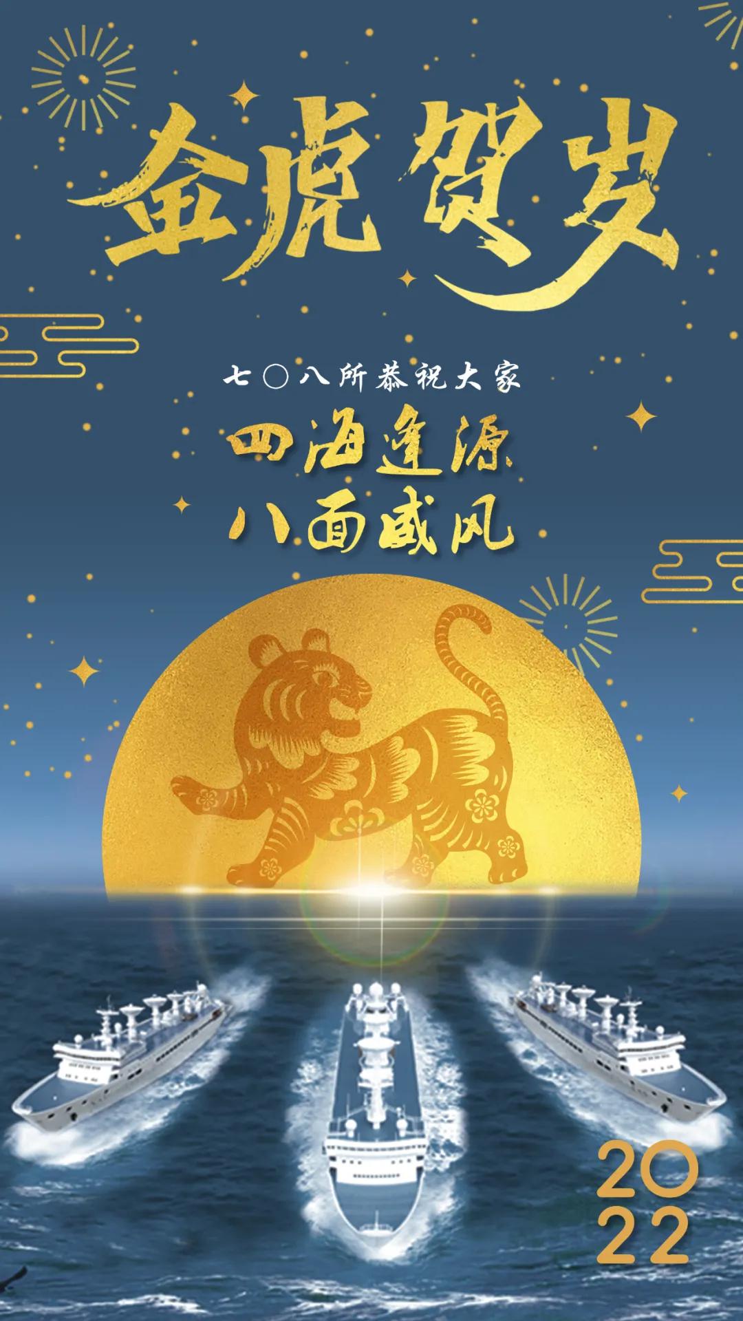 海報以七〇八所自主研發(fā)設(shè)計的遠(yuǎn)望號船隊、金虎、星空、月亮為元素創(chuàng)作,彰顯祖國浩瀚海疆、無垠星空的安寧祥和。四十余年來,遠(yuǎn)望號船隊劈波斬浪,守護(hù)著祖國的花好月圓。從遠(yuǎn)望一號至遠(yuǎn)望七號,凝結(jié)著幾代中國船舶人的智慧和汗水,堅守一方“浮動國土”。