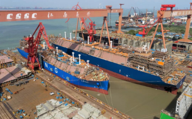 去年11月23日,滬東中華首次實(shí)現(xiàn)兩艘LNG整船同時(shí)出塢的壯舉,此次再度呈現(xiàn),有望成為L(zhǎng)NG船建造流程中的常規(guī)場(chǎng)景,以持續(xù)提升建造速度和效率,滿足市場(chǎng)之需。
