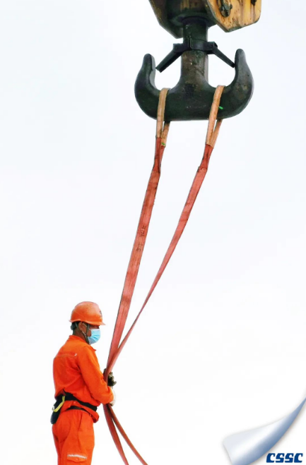 一名船舶起重工正在準備起吊直徑10米、重約5噸的玻璃鋼材質(zhì)頂部圓盤至船舶上安裝,正值“梅花”過境后的陰雨天氣,身穿橙色工作服的船舶起重工在橙色吊帶、玻璃鋼材質(zhì)圓盤以及灰色天空下,構(gòu)筑了一幅簡約而又濃墨重彩的線條與內(nèi)容相輔相成,彰顯了船舶工業(yè)之美、勞動光榮之美。
