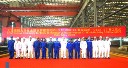 近日,中國船舶集團旗下大連造船為MSC地中海航運建造的16000TEU集裝箱船9號船在天津基地開工。該船是大船天津建造的首艘LNG雙燃料動力16000TEU集裝箱船。