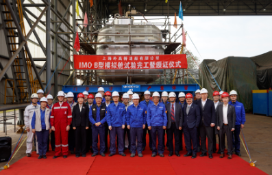 該B型模擬艙艙容為48立方米,艙室及氣室外形和節(jié)點型式皆與實船艙型保持一致,材質(zhì)為9NI鋼。本次模擬艙建造完工,驗證了外高橋造船自主完成B型艙的設(shè)計、生產(chǎn)制造和質(zhì)量控制等全流程的能力,為實船建造打下堅實基礎(chǔ)。