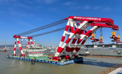澳氹第四條跨海大橋鋼梁吊裝任務(wù)由“鐵建大橋起1”號(hào)起重船完成。該船由中國(guó)船舶集團(tuán)七〇八所研發(fā)設(shè)計(jì),一期“L”型起重臂架為澳氹四橋工程專(zhuān)屬設(shè)計(jì)和打造,具有完全自主知識(shí)產(chǎn)權(quán)。
