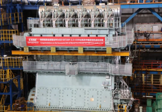上半年,中船發動機主機完工臺套數同比提高17.2%,其中雙燃料主機交付持續提速,臺套數和馬力數同比分別提高85.7%和64.7%;成功交驗國內首臺甲醇雙燃料主機6G50ME-C9.6-LGIM+EGRBP,低碳零碳燃料布局取得重大進展;連續交付兩臺世界首制的雙機雙槳主機6X72DF-2.2+iCER,發動機產品型譜進一步豐富。