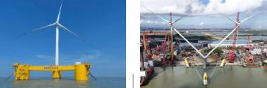 #  采用拉索系統、單點系泊和長機翼形塔筒設計,大大降低塔架載荷,從而保證了塔架結構的輕量化設計及抗風能力;