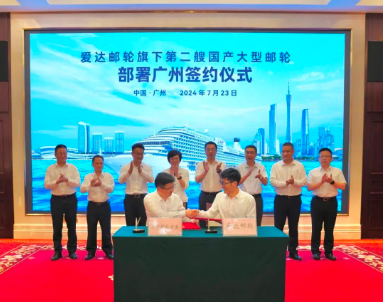 7月23日,中國船舶集團有限公司旗下中船郵輪科技管理有限公司所屬愛達郵輪有限公司與廣州南沙國際郵輪母港運營管理有限公司在廣州簽署合作協議,共同宣布第二艘國產大型郵輪將主要依托廣州母港運營,全面布局華南市場,進一步推動廣州郵輪全產業鏈生態體系建設,探索打造郵輪經濟與文商旅融合發展的創新樣板。中國船舶集團黨組成員、副總經理盛紀綱出席簽約儀式。