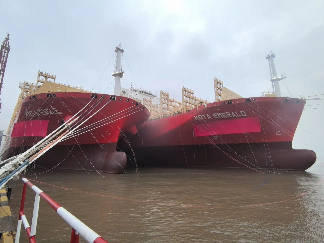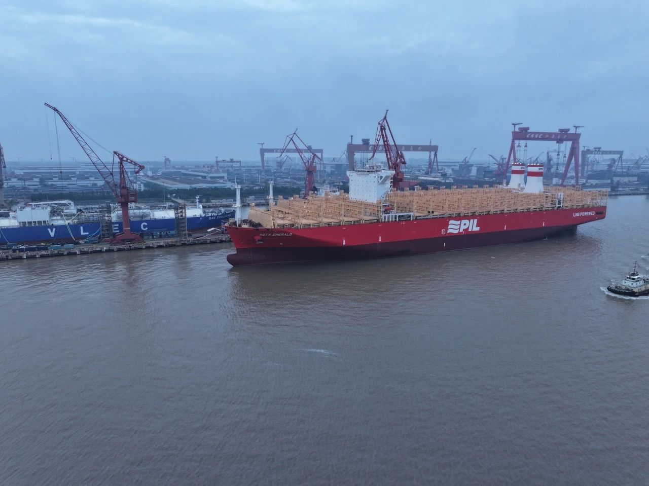 10月15日,中國船舶集團旗下江南造船聯(lián)合中船貿(mào)易為太平船務(wù)建造的14000TEU液化天然氣(LNG)雙燃料動力系列集裝箱船首制船“KOTA EAGLE(鷹城)”號和2號船“KOTA EMERALD(翠城)”號同日命名,其中“KOTA EAGLE(鷹城)”號于當日簽字交付。