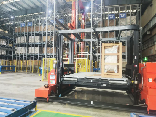 該系統(tǒng)單托盤舉升能力達(dá)到6噸,適用于各類大、重、分布不均、形狀各異物資的立體存儲。采用業(yè)內(nèi)首創(chuàng)的駛?cè)胧阶詣?dòng)導(dǎo)向車作為移載動(dòng)力,通過自主研發(fā)的重型堆垛裝備與智能控制系統(tǒng)聯(lián)動(dòng),能夠在復(fù)雜的立體倉庫環(huán)境中準(zhǔn)確定位目標(biāo)并快速平穩(wěn)完成作業(yè)任務(wù)。同時(shí),通過引入現(xiàn)代物聯(lián)網(wǎng)和數(shù)字孿生等先進(jìn)技術(shù),實(shí)現(xiàn)了倉儲物流的智能可視化運(yùn)營。