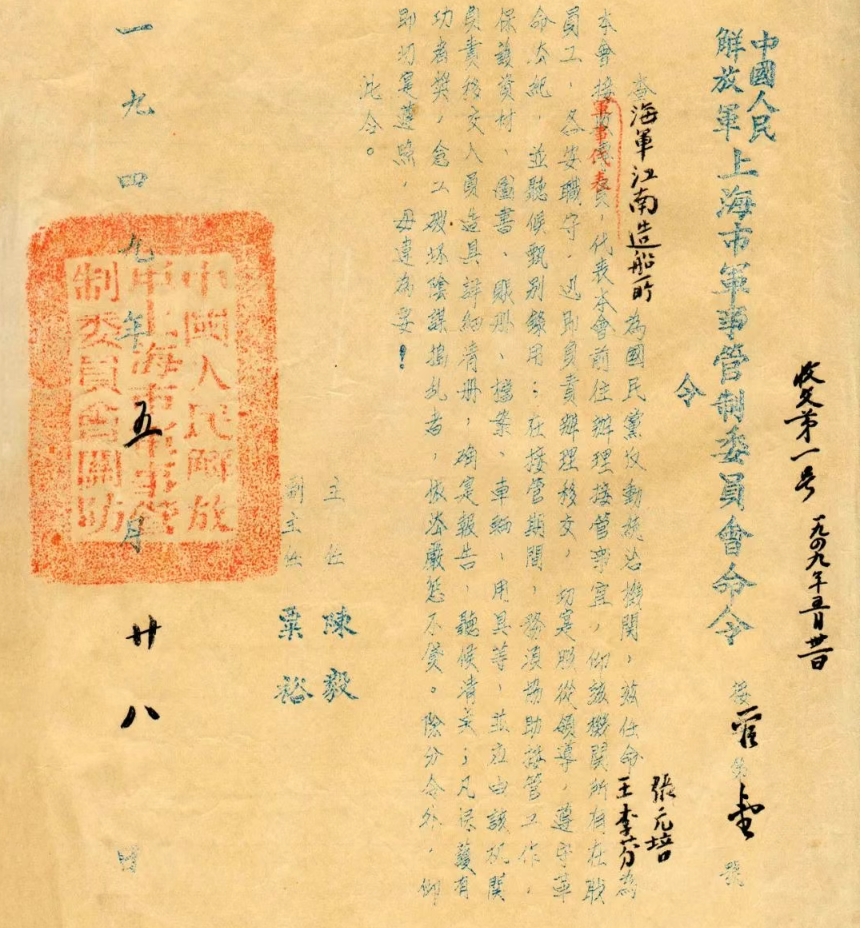 江南之于國(guó)家的戰(zhàn)略意義,周恩來曾這樣說過:“江南造船所是中國(guó)乃至亞洲最大的軍工企業(yè),要爭(zhēng)取在解放軍進(jìn)滬時(shí),安全、完整地交給人民。”1949年5月27日,上海解放。第二天上海市軍管會(huì)主任陳毅、副主任粟裕簽發(fā)第一號(hào)令,宣布接管海軍江南造船所。華東海軍司令員張愛萍來到江南造船所和工人們一起投入搶修造船設(shè)施的勞動(dòng)中,江南造船在廢墟上獲得新生。