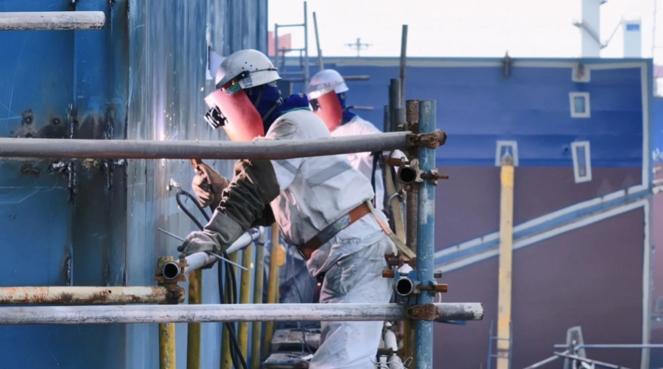 如今的江南造船寬敞明亮、干凈整潔,車間里、船塢內(nèi)、碼頭上……身著不同顏色工裝的作業(yè)人員在各自崗位上有序地工作。廠區(qū)內(nèi)懸掛著顯眼的“擔(dān)高質(zhì)量發(fā)展的先行者 當(dāng)傳統(tǒng)制造業(yè)的顛覆者”標(biāo)語,以造船界優(yōu)秀前輩命名的廠區(qū)道路兩旁懸掛著江南造船科創(chuàng)大會(huì)的優(yōu)秀獲獎(jiǎng)?wù)邆兊暮?bào),新舊交替的一代代造船界前輩激勵(lì)著每一位江南人不斷向前。