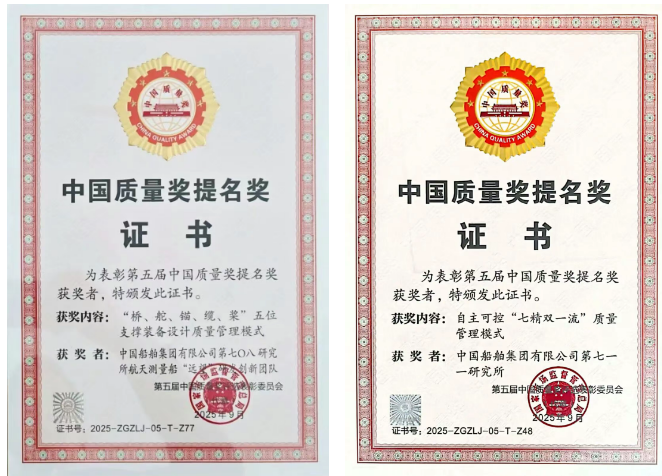 9月16-17日,以“質量:賦能新質生產力”為主題的中國質量(南京)大會在南京舉辦。本次質量大會上頒發了第五屆中國質量獎,中國船舶集團有限公司旗下第七〇八研究所航天測量船“遠望”研發創新團隊、第七一一研究所在船舶動力領域的優秀質量管理實踐與創新成果榮獲第五屆中國質量獎提名獎。