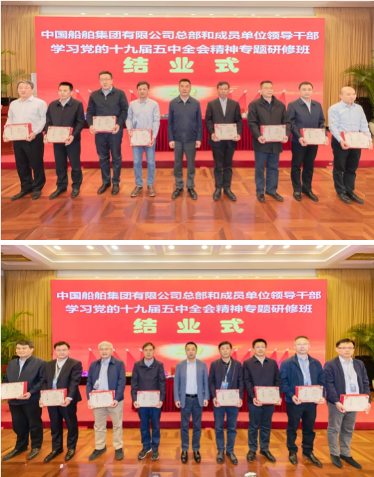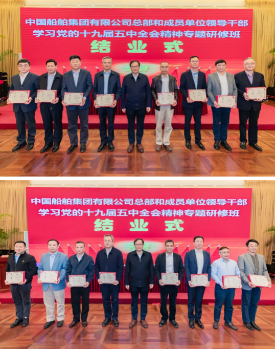4月23日,中國船舶集團(tuán)有限公司總部和成員單位領(lǐng)導(dǎo)干部學(xué)習(xí)黨的十九屆五中全會精神和黨史學(xué)習(xí)教育專題研修班圓滿結(jié)業(yè)。培訓(xùn)期間,中國船舶集團(tuán)黨組書記、董事長雷凡培以《深入貫徹落實(shí)習(xí)近平總書記重要指示批示精神 努力加快建設(shè)世界一流船舶集團(tuán)》為題給全體學(xué)員們講授了第一課,中國船舶集團(tuán)黨組副書記、總經(jīng)理?xiàng)罱鸪?,黨組成員、副總經(jīng)理孫偉、盛紀(jì)綱以及相關(guān)部門負(fù)責(zé)人先后出席各期結(jié)業(yè)式并聽取了學(xué)員們的學(xué)習(xí)匯報(bào)。