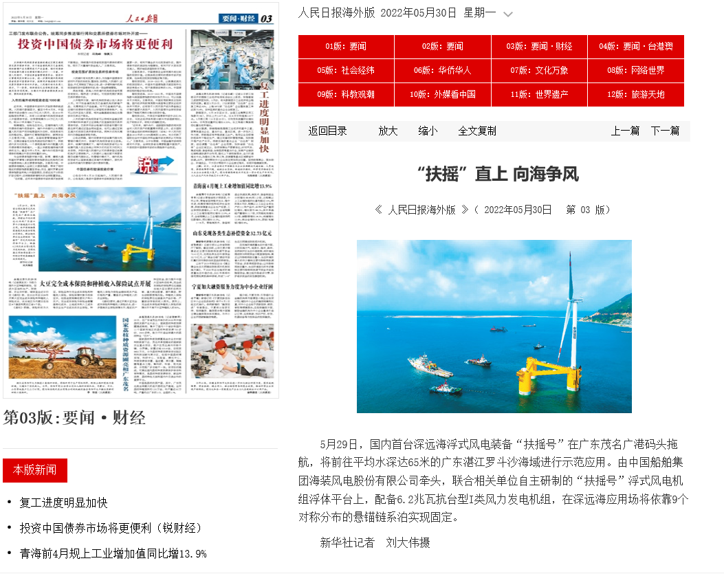 這是“扶搖號(hào)”繼機(jī)組、浮體下線(xiàn)后,再次取得的又一里程碑成果,將對(duì)我國(guó)海上風(fēng)電邁向深遠(yuǎn)海,助力“30·60”雙碳目標(biāo)達(dá)成產(chǎn)生重大意義。