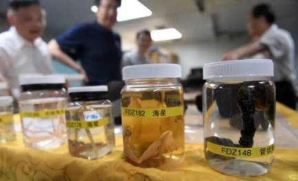 3月11日,“探索一號(hào)”科考船攜“奮斗者”號(hào)全海深載人潛水器抵達(dá)三亞,科研人員在介紹采集的深淵宏生物、巖石、結(jié)核、沉積物樣品。新華社記者 陳凱姿 攝