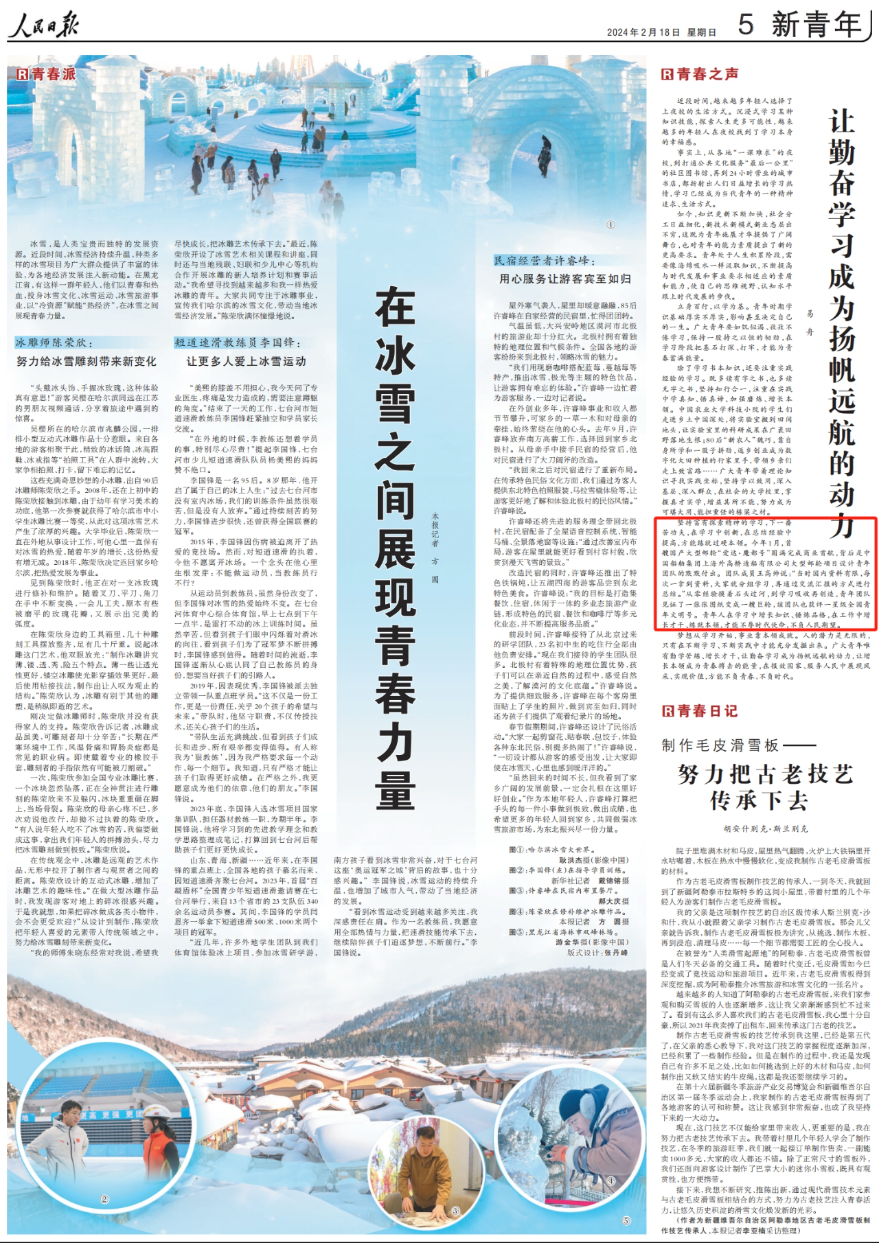 今年1月,首艘國(guó)產(chǎn)大型郵輪“愛(ài)達(dá)·魔都號(hào)”圓滿完成商業(yè)首航,背后是中國(guó)船舶集團(tuán)上海外高橋造船有限公司大型郵輪項(xiàng)目設(shè)計(jì)青年團(tuán)隊(duì)的默默付出。團(tuán)隊(duì)成員王高帥說(shuō):“當(dāng)時(shí)國(guó)內(nèi)資料有限,每次一拿到資料,大家就分組學(xué)習(xí),再通過(guò)交流匯報(bào)的方式進(jìn)行總結(jié)。”從零經(jīng)驗(yàn)摸著石頭過(guò)河,到學(xué)習(xí)吸收再創(chuàng)造,青年團(tuán)隊(duì)見(jiàn)證了一張張圖紙變成一艘巨輪,該團(tuán)隊(duì)也獲評(píng)一星級(jí)全國(guó)青年文明號(hào)。青年人在學(xué)習(xí)中增長(zhǎng)知識(shí)、錘煉品格,在工作中增長(zhǎng)才干、練就本領(lǐng),才能不辱時(shí)代使命,不負(fù)人民期望。
