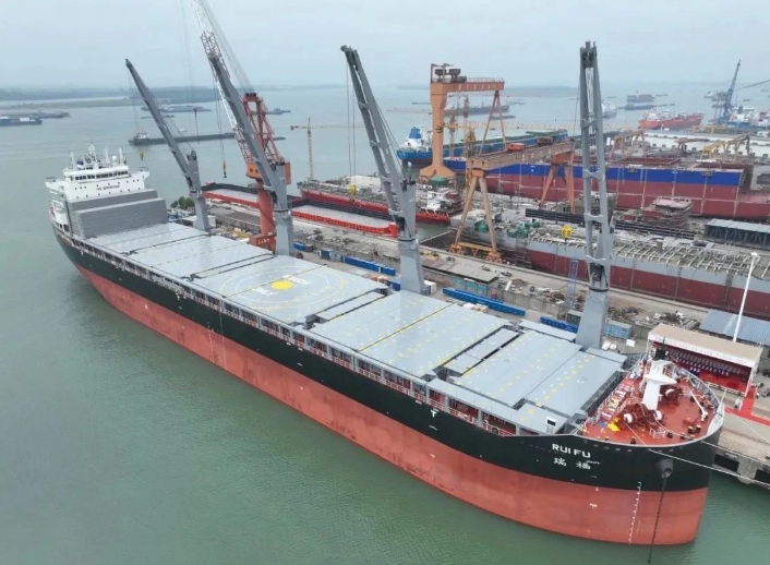 日前,中船集團(tuán)上船院研發(fā)設(shè)計(jì)62000噸重吊多用途船OCTOPUS 62 “明融”號(hào)、“瑞福”號(hào)命名交付。