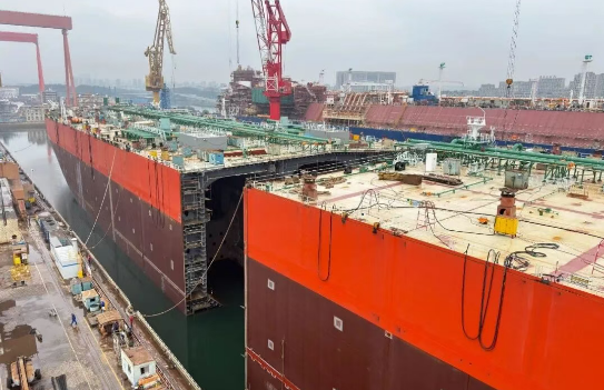 10月10日,大連造船為CIDO SHIPPING (H.K.) CO., LTD建造的30萬噸VLCC130號船順利完成艏半段出塢及兩大段對接節點。此次作業較年度計劃提前20天完成,有效壓縮了施工周期,顯著提升了作業效率。