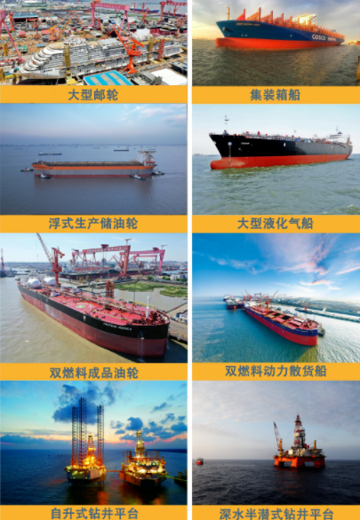 公司主要經營范圍覆蓋民用船舶、海洋工程、船用配套等領域,在大型郵輪、好望角型散貨船、大中型原油船、超大型集裝箱船、超大型液化氣船、海上浮式生產儲油船(FPSO)、半潛式/自升式鉆井平臺、海工輔助船(PSV)等船海產品領域的設計建造能力突出。截止2023年1月,公司累計完成交付的各類船舶、海工產品530余艘(座),持續引領全球船舶海工裝備發展潮流。